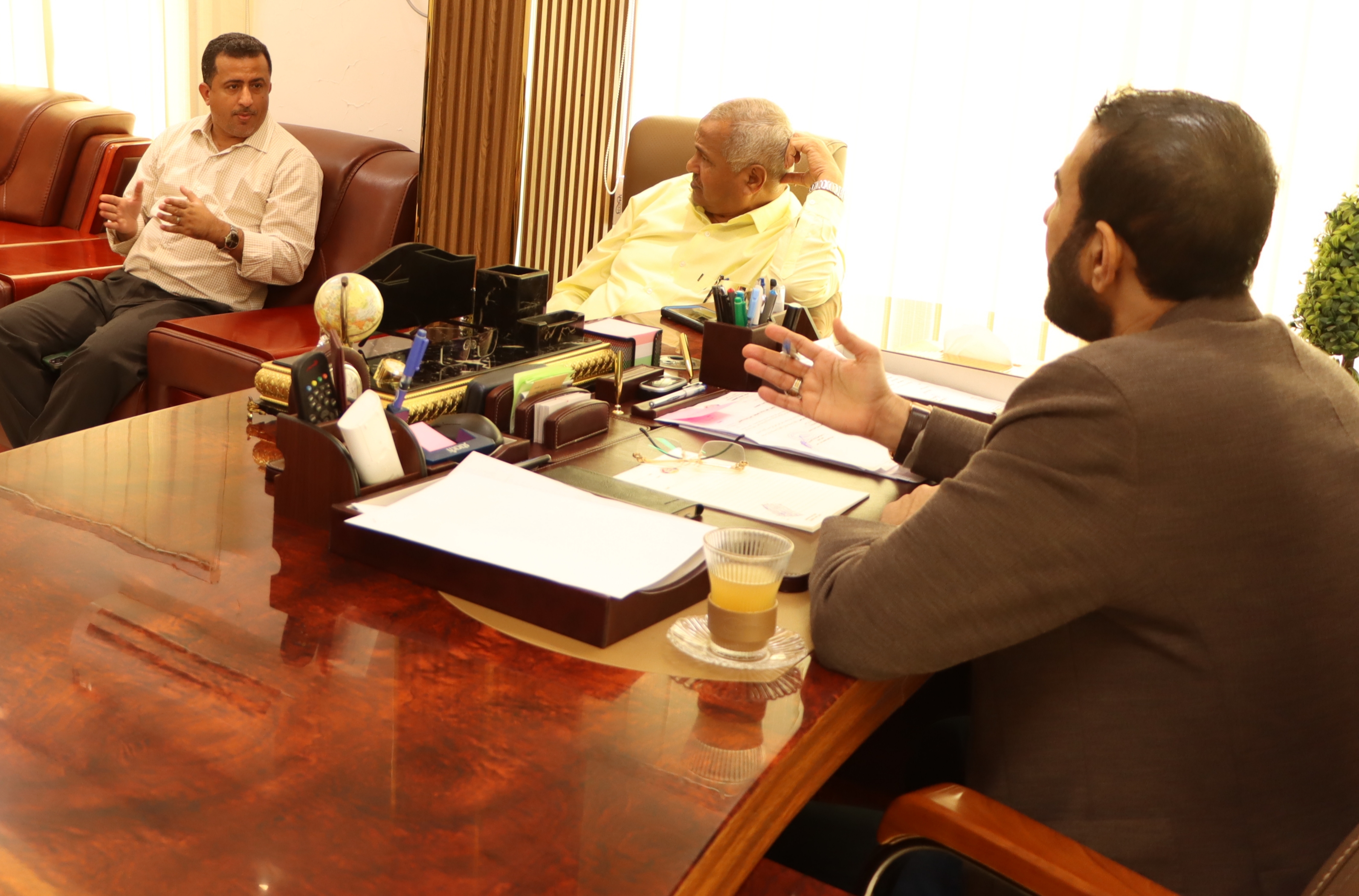 وفقاً لتوجيهات دولة رئيس مجلس الوزراء وتكليف وزير النفط والمعادن، ترأس وكيل وزارة النفط والمعادن للشؤون المالية والإدارية، طلال بن حيدرة، اليوم، اجتماعاً قيادياً موسعاً ضم المدير العام التنفيذي لشركة النفط اليمنية، طارق الوليدي، ونائب المدير التنفيذي لشركة مصافي عدن، سعيد محمد، والمدير العام للمؤسسة العامة للكهرباء في عدن، سالم الوليدي.